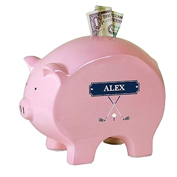 Amazon Com Personalized Pink Piggy Bank With Golf Design Baby