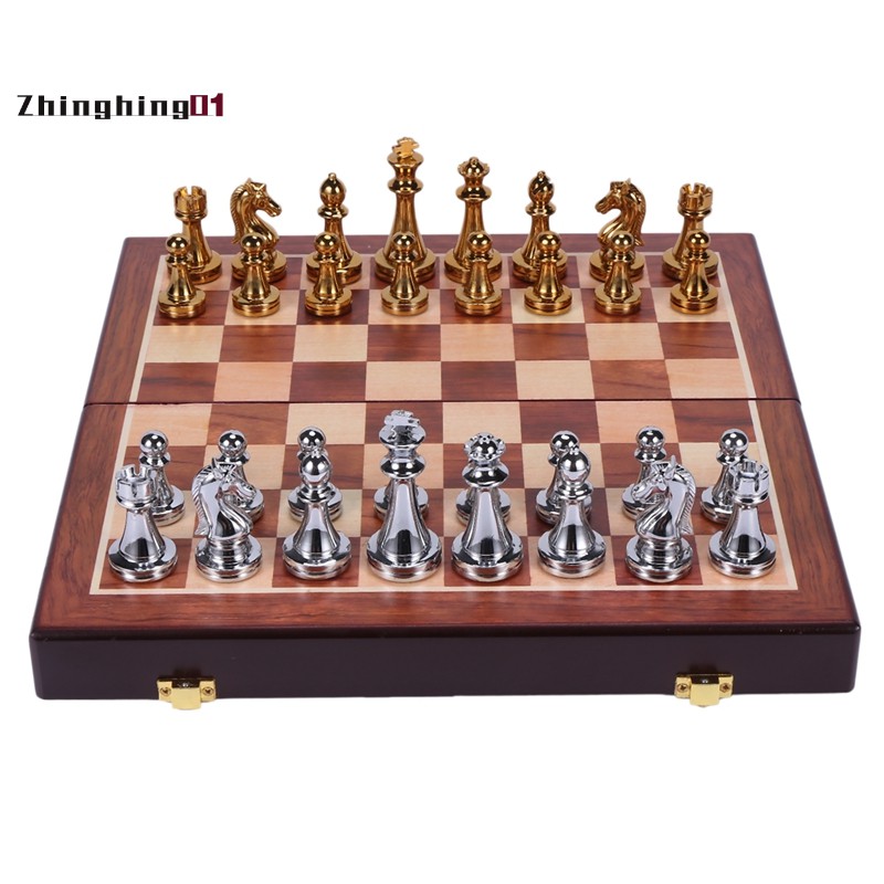 Easytoday Metal Glossy Golden And Sier Chess Pieces Solid Wooden Folding Chess Board High Grade Professional Chess Games Set Shopee Indonesia