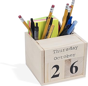 Amazon Com Office Or Home Decorative Cube Desktop Block Calendar Pen Holder Unfinished Wood For Diy Projects Natural Office Products
