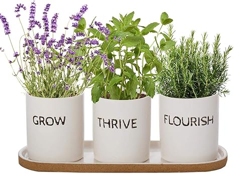 Dibor Indoor Herb Planters Tray Set Of 3 Ceramic Kitchen Windowsill Plant Pots Amazon Co Uk Garden Outdoors