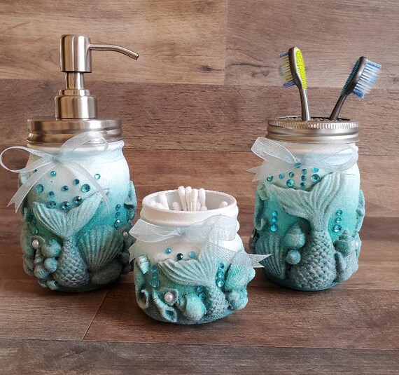 Mermaid Bathroom Decor Mermaid Decor Mermaid Painted Mason Etsy