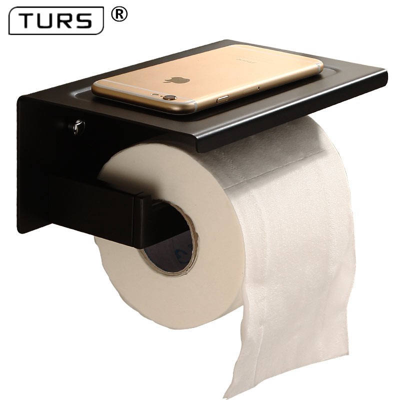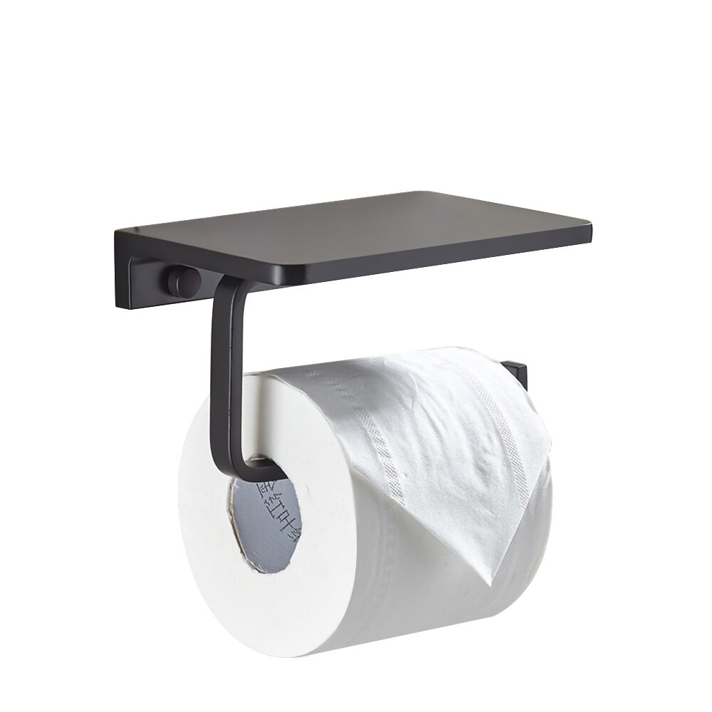 Amazon Com Smarthome Toilet Paper Holder With Shelf Black Anti Rust Aluminum Tissue Roll Holder With Mobile Phone Storage Shelf For Bathroom 3m Self Adhesive No Drilling Or Wall Mounted With Screws Kitchen