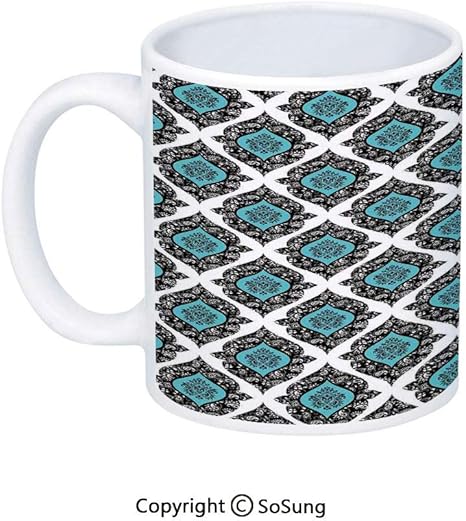 Amazon Com Floral Coffee Mug Baroque Victorian Style Antique Renaissance Shapes Background Fashion Artwork Printed Ceramic Coffee Cup Water Tea Drinks Cup Black Aqua White Kitchen Dining