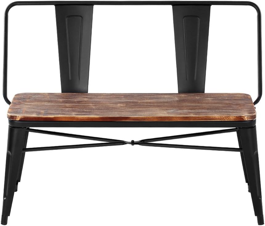 Amazon Com Ikayaa 2 Seater Kitchen Dining Bench Chair W Backrest Natural Pinewood Top Metal Frame Patio Garden Bench Furniture 150kg Capacity Sports Outdoors