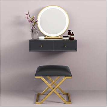 Amazon Com Yevison Wall Mounted Dressing Table With Large Mirror And Drawers Small Simple Vanity Table Under The Makeup Bedroom Desk Dresser Furniture Decor