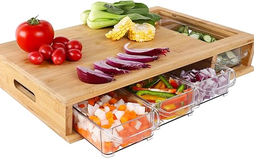 ZUHAUSIGER Bamboo Cutting Board with ContainersBamboo Cutting Board WoodChopping Board Prepdeck Cutting Board with StorageCutting Board with Tray with lids.