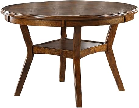 Amazon Com Benjara Round Top Wooden Dining Table With Boomerang Legs Brown Tables