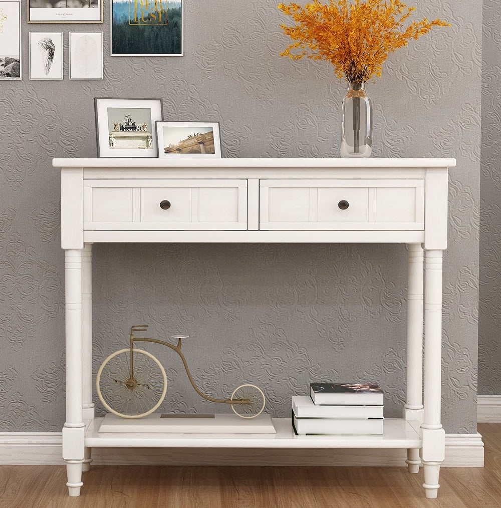4HOMART White Console Table Corner with 2 Drawers and Storage Shelf Wooden 100CM Side Table Dressing Table Desk for Bedroom Entryway Living Room Furniture 35 out of 5 stars 10 6599 65. Here is a brilliant sample a charming white and storage-friendly entryway table. Step-by-step instructions here abeautifulmess.
