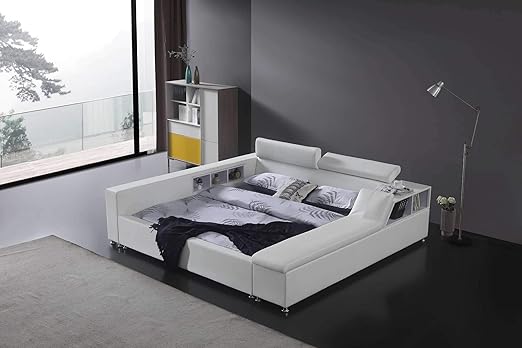 Amazon Com Greatime B2008 Modern Platform Bed With Siderail Storage King White Kitchen Dining
