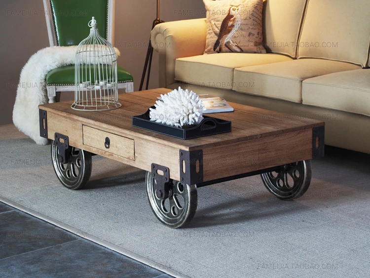 French Minimalist Modern American Creative Rustic Wood Coffee Table Coffee Table Coffee Table Wood Coffee Table With Iron Wheel Tabl Wooden Thomaswood Work Tables Aliexpress