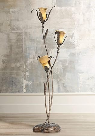 Artistic Floor Lamp Bronze And Gold Lily Shaped Amber Glass Flower Lights For Living Room Bedroom Uplight Franklin Iron Works Video Projector Lamps Amazon Com