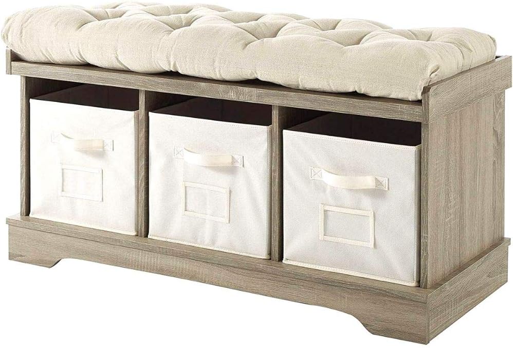 Woven Paths Sage Entryway Storage Bench With Cushion And Bins Grey Wash Walmart Com Walmart Com