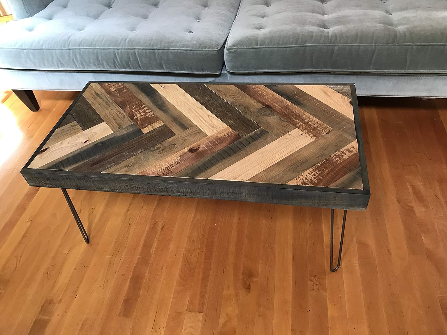 See more ideas about coffee table coffee table wood barnwood coffee table. Barn wood coffee table Herringbone table Hairpin legs Farmhouse Reclaimed wood furniture Rustic barnwood living room GrindstoneDesign. Dont buy boring furniture barnwood coffee tables have a.