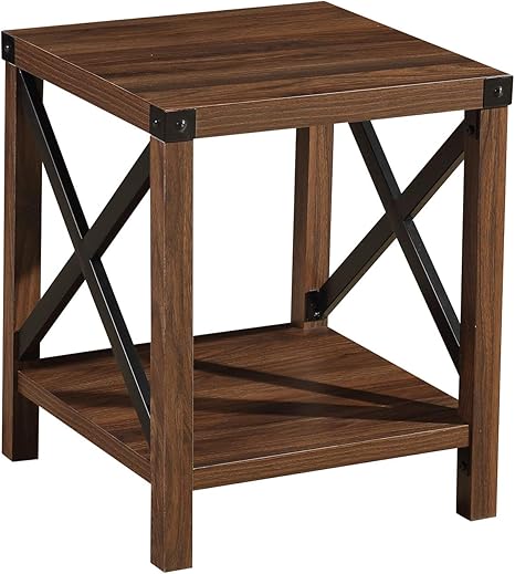 Amazon Com Lipo Square End Table Rustic Modern Farmhouse Metal And Wood Living Room Small End Table 18 Inch Brown Kitchen Dining